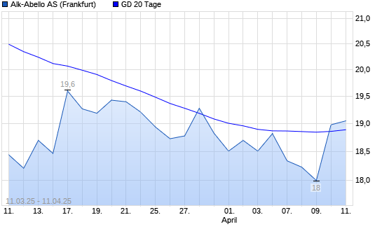 Mit dem Anstieg auf 18,98 EUR hat die Alk Abello-Aktie am 10.04.2025 die 20-Tage-Linie nach oben gekreuzt.