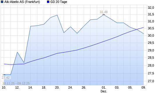Mit dem Rücksetzer auf 30,42 EUR hat die Alk Abello-Aktie am 08.12.2025 die 20-Tage-Linie nach unten gekreuzt.