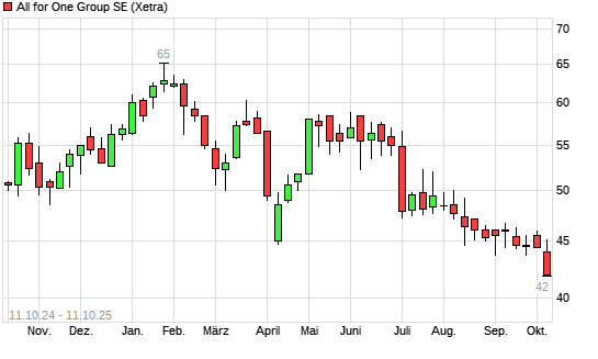 Mit dem Rücksetzer auf 40,10 EUR hat die All for One Group-Aktie (ISIN DE0005110001) am 10.10.2025 ein neues 12-Monats-Tief erreicht und damit den Kurs vom 24.09.2025 eingestellt.