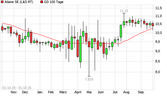 Mit dem Anstieg auf 10,60 EUR hat die Allane-Aktie am 30.09.2025 die 100-Tage-Linie nach oben gekreuzt.