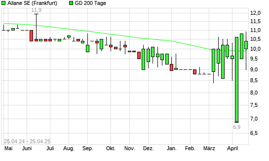 Mit dem Anstieg auf 10,40 EUR hat die Allane-Aktie am 24.04.2025 die 200-Tage-Linie nach oben gekreuzt.