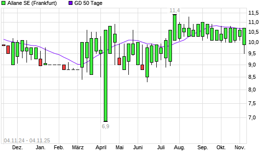 Mit dem Anstieg auf 10,70 EUR hat die Allane-Aktie am 03.11.2025 die 50-Tage-Linie nach oben gekreuzt.