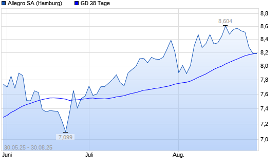 Mit dem Rücksetzer auf 8,18 EUR hat die Allegro-Aktie am 29.08.2025 die 38-Tage-Linie nach unten gekreuzt.