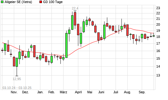 Mit dem Anstieg auf 18,75 EUR hat die Allgeier-Aktie am 02.10.2025 die 100-Tage-Linie nach oben gekreuzt.