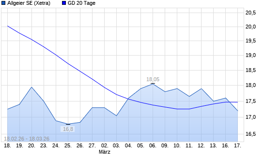 Mit dem Anstieg auf 17,45 EUR hat die Allgeier-Aktie am 17.03.2026 die 20-Tage-Linie nach oben gekreuzt.