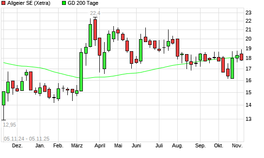 Mit dem Rücksetzer auf 18,25 EUR hat die Allgeier-Aktie am 04.11.2025 die 200-Tage-Linie nach unten gekreuzt.