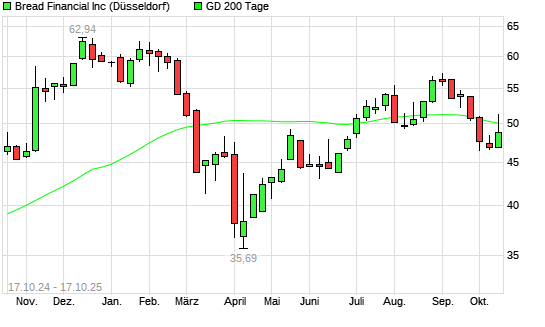 Mit dem Rücksetzer auf 49,10 EUR hat die Alliance Data Systems-Aktie am 16.10.2025 die 200-Tage-Linie nach unten gekreuzt.