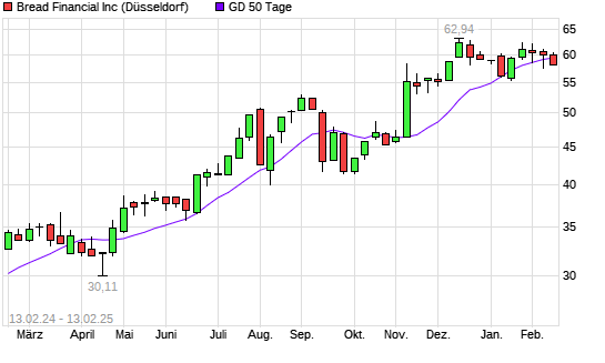 Mit dem Rücksetzer auf 58,86 EUR hat die Alliance Data Systems-Aktie am 12.02.2025 die 50-Tage-Linie nach unten gekreuzt.