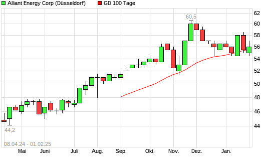Mit dem Anstieg auf 56,50 EUR hat die Alliant Energy-Aktie am 31.01.2025 die 100-Tage-Linie nach oben gekreuzt.