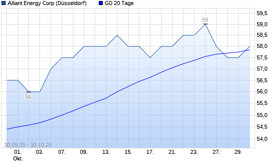 Mit dem Rücksetzer auf 58,00 EUR hat die Alliant Energy-Aktie am 29.10.2025 die 20-Tage-Linie nach unten gekreuzt.