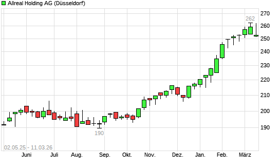 Mit dem Anstieg auf 260,50 EUR hat die Allreal Holding-Aktie (ISIN CH0008837566) am 10.03.2026 ein neues All-Time-High erreicht und damit den Kurs vom 06.03.2026 eingestellt.