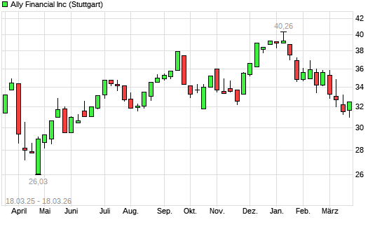 Mit dem Rücksetzer auf 31,04 EUR hat die Ally Financial-Aktie (ISIN US02005N1000) am 17.03.2026 ein neues 6-Monats-Tief erreicht und damit den Kurs vom 12.03.2026 eingestellt.