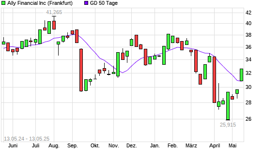 Mit dem Anstieg auf 30,89 EUR hat die Ally Financial-Aktie am 12.05.2025 die 50-Tage-Linie nach oben gekreuzt.