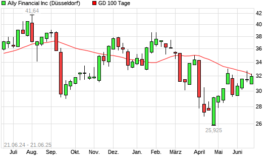 Mit dem Rücksetzer auf 31,80 EUR hat die Ally Financial-Aktie am 20.06.2025 die 100-Tage-Linie nach unten gekreuzt.