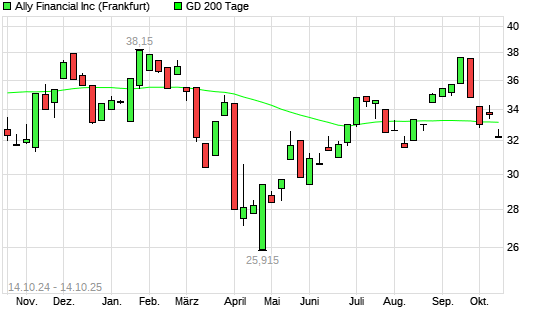 Mit dem Rücksetzer auf 32,26 EUR hat die Ally Financial-Aktie am 13.10.2025 die 200-Tage-Linie nach unten gekreuzt.