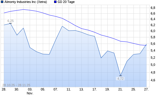 Mit dem Anstieg auf 5,59 EUR hat die Almonty Industries-Aktie am 27.11.2025 die 20-Tage-Linie nach oben gekreuzt.