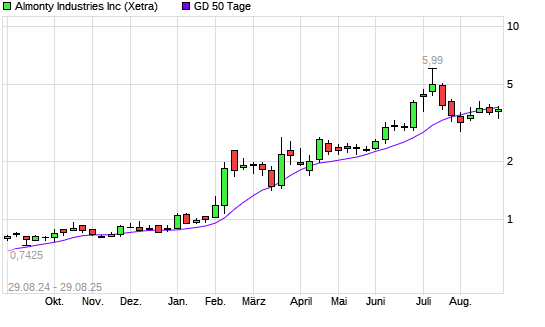 Mit dem Anstieg auf 3,79 EUR hat die Almonty Industries-Aktie am 28.08.2025 die 50-Tage-Linie nach oben gekreuzt.