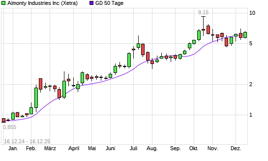 Mit dem Anstieg auf 6,25 EUR hat die Almonty Industries-Aktie am 15.12.2025 die 50-Tage-Linie nach oben gekreuzt.