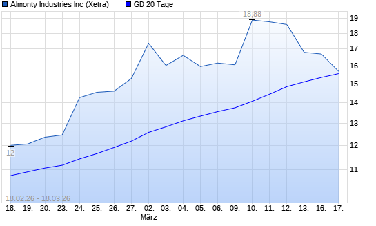 Mit dem Rücksetzer auf 15,70 EUR hat die Almonty Industries-Aktie am 17.03.2026 die 20-Tage-Linie nach unten gekreuzt.