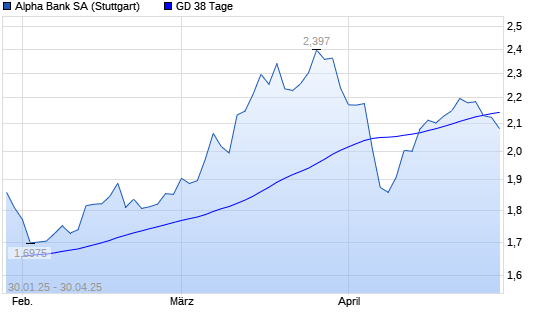 Mit dem Rücksetzer auf 2,11 EUR hat die Alpha Bank-Aktie am 29.04.2025 die 38-Tage-Linie nach unten gekreuzt.