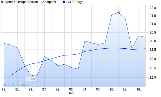 Mit dem Rücksetzer auf 19,50 EUR hat die Alpha & Omega Semiconductor-Aktie am 16.06.2025 die 20-Tage-Linie nach unten gekreuzt.