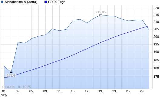 Mit dem Rücksetzer auf 206,70 EUR hat die Alphabet A (ex GOOGLE)-Aktie am 30.09.2025 die 20-Tage-Linie nach unten gekreuzt.