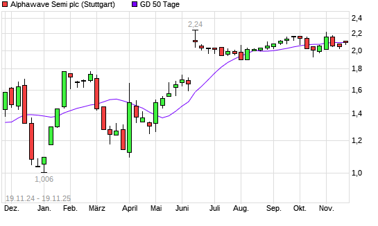 Mit dem Rücksetzer auf 2,12 EUR hat die Alphawave IP-Aktie am 18.11.2025 die 50-Tage-Linie nach unten gekreuzt.