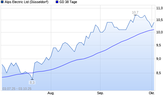 Mit dem Anstieg auf 10,70 EUR hat die Alps Electric-Aktie am 02.10.2025 die 38-Tage-Linie nach oben gekreuzt.