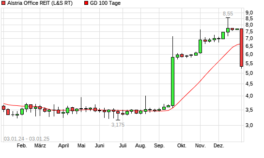 Mit dem Rücksetzer auf 5,46 EUR hat die Alstria Office (REIT)-Aktie am 02.01.2025 die 100-Tage-Linie nach unten gekreuzt.