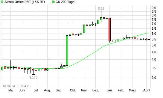 Mit dem Rücksetzer auf 5,38 EUR hat die Alstria Office (REIT)-Aktie am 09.04.2025 die 200-Tage-Linie nach unten gekreuzt.