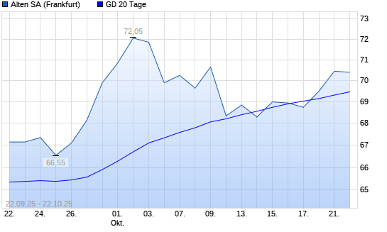 Mit dem Anstieg auf 69,50 EUR hat die Alten-Aktie am 21.10.2025 die 20-Tage-Linie nach oben gekreuzt.