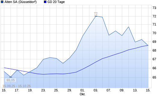 Mit dem Rücksetzer auf 68,25 EUR hat die Alten-Aktie am 14.10.2025 die 20-Tage-Linie nach unten gekreuzt.