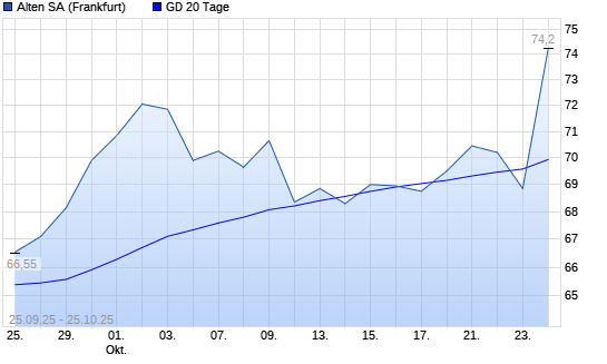 Mit dem Rücksetzer auf 68,85 EUR hat die Alten-Aktie am 24.10.2025 die 20-Tage-Linie nach unten gekreuzt.