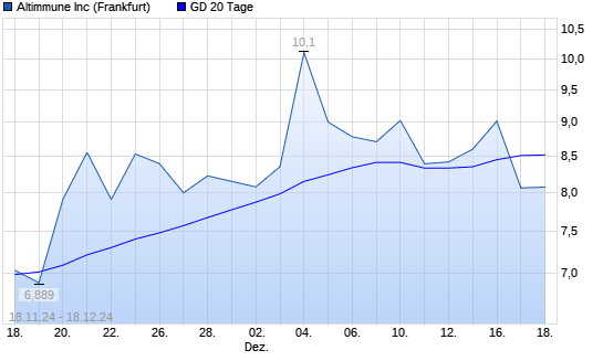 Mit dem Rücksetzer auf 8,06 EUR hat die Altimmune-Aktie am 17.12.2024 die 20-Tage-Linie nach unten gekreuzt.