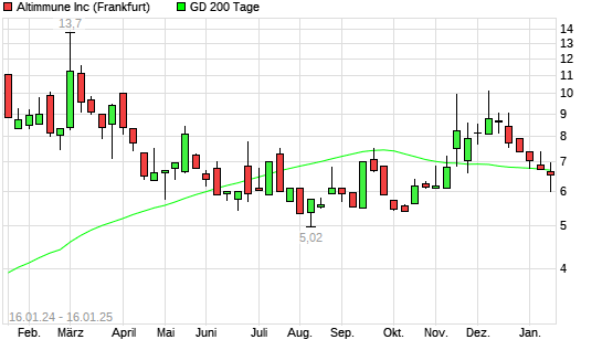Mit dem Rücksetzer auf 6,00 EUR hat die Altimmune-Aktie am 15.01.2025 die 200-Tage-Linie nach unten gekreuzt.