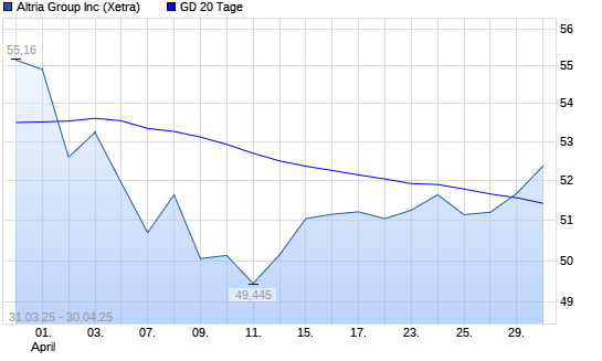 Mit dem Anstieg auf 51,53 EUR hat die Altria-Aktie am 29.04.2025 die 20-Tage-Linie nach oben gekreuzt.