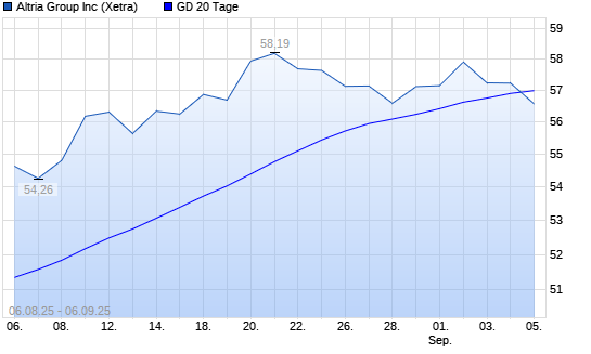 Mit dem Rücksetzer auf 56,85 EUR hat die Altria-Aktie am 05.09.2025 die 20-Tage-Linie nach unten gekreuzt.