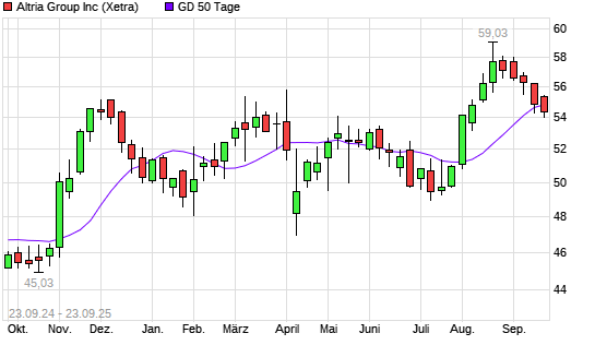 Mit dem Rücksetzer auf 53,96 EUR hat die Altria-Aktie am 22.09.2025 die 50-Tage-Linie nach unten gekreuzt.