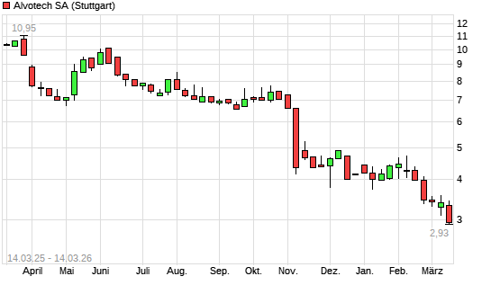 Mit dem Rücksetzer auf 3,00 EUR hat die Alvotech-Aktie (ISIN LU2458332611) am 13.03.2026 ein neues All-Time-Low erreicht und damit den Kurs vom 04.03.2026 eingestellt.