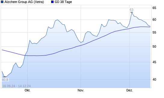 Mit dem Anstieg auf 57,60 EUR hat die AlzChem Group-Aktie am 13.12.2024 die 38-Tage-Linie nach oben gekreuzt.