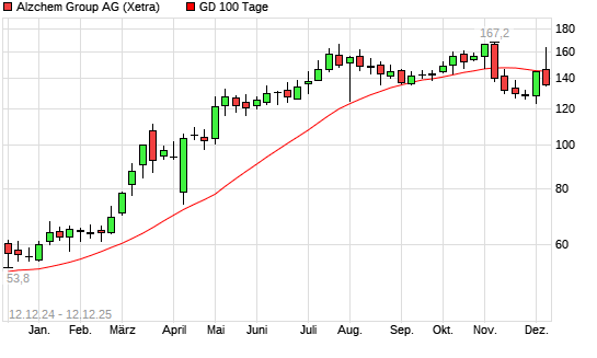 Mit dem Rücksetzer auf 142,40 EUR hat die Alzchem-Aktie am 11.12.2025 die 100-Tage-Linie nach unten gekreuzt.