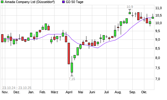Mit dem Anstieg auf 10,50 EUR hat die Amada-Aktie am 22.10.2025 die 50-Tage-Linie nach oben gekreuzt.