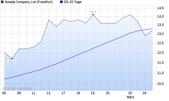 Mit dem Rücksetzer auf 12,90 EUR hat die Amada-Aktie am 04.03.2026 die 20-Tage-Linie nach unten gekreuzt.