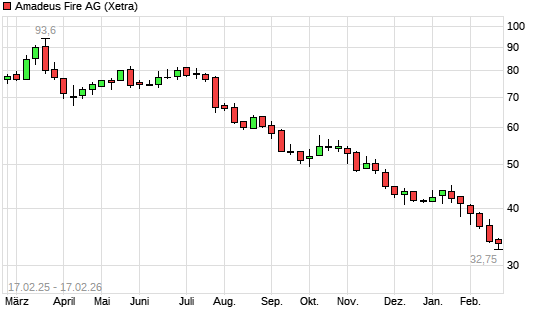 Mit dem Rücksetzer auf 33,20 EUR hat die Amadeus FiRe-Aktie (ISIN DE0005093108) am 16.02.2026 ein neues 10-Jahres-Tief erreicht und damit den Kurs vom 13.02.2026 eingestellt.
