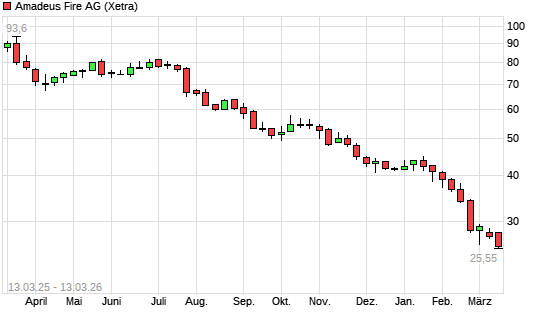 Mit dem Rücksetzer auf 25,80 EUR hat die Amadeus FiRe-Aktie (ISIN DE0005093108) am 12.03.2026 ein neues 10-Jahres-Tief erreicht und damit den Kurs vom 24.02.2026 eingestellt.