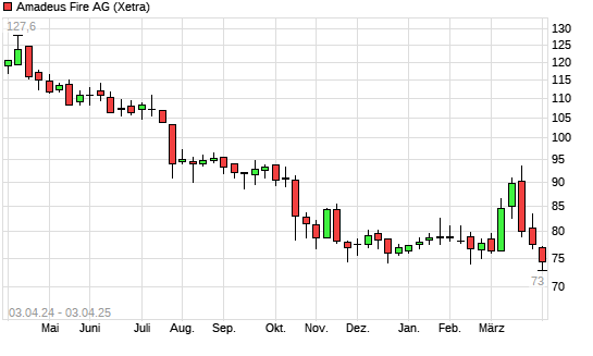 Mit dem Rücksetzer auf 73,40 EUR hat die Amadeus FiRe-Aktie (ISIN DE0005093108) am 02.04.2025 ein neues 3-Jahres-Tief erreicht und damit den Kurs vom 19.11.2024 eingestellt.