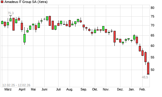 Mit dem Rücksetzer auf 51,54 EUR hat die Amadeus IT-Aktie (ISIN ES0109067019) am 11.02.2026 ein neues 3-Jahres-Tief erreicht und damit den Kurs vom 10.02.2026 eingestellt.