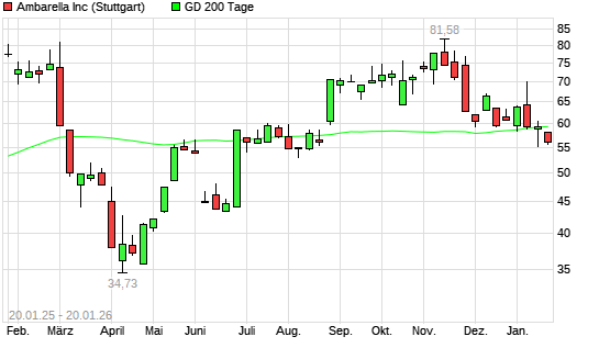 Mit dem Rücksetzer auf 58,68 EUR hat die Ambarella-Aktie am 19.01.2026 die 200-Tage-Linie nach unten gekreuzt.