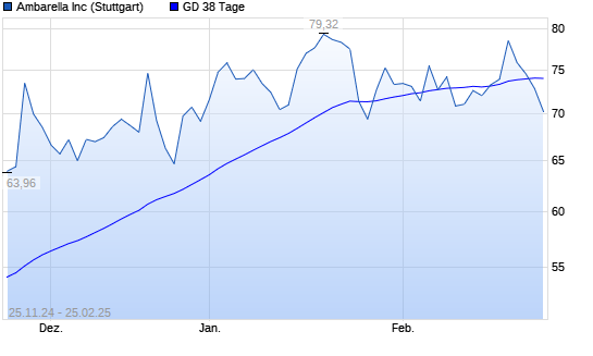 Mit dem Rücksetzer auf 74,32 EUR hat die Ambarella-Aktie am 24.02.2025 die 38-Tage-Linie nach unten gekreuzt.