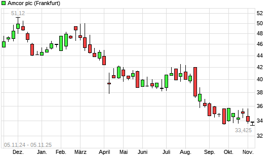 Mit dem Rücksetzer auf 6,69 EUR hat die Amcor Plc-Aktie (ISIN JE00BJ1F3079) am 04.11.2025 ein neues 5-Jahres-Tief erreicht und damit den Kurs vom 25.09.2025 eingestellt.